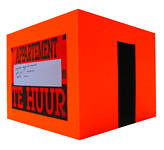 Tevens doet de maquette die het interieur representeert dienst als een vorm van promotie, zogezegd om de ruimte te verhuren. Maar de functie hiervan is eigenlijk een manier om het werk in eenvoudigere termen uit te leggen en aan te kondigen, een beetje zoals alle maquettes van architecturale projecten dat doen. In deze maquette staat er een berglandschap alsof het een meubel is. Het exterieur zit als het ware in het interieur verstopt dat op zijn beurt schuilt achter een label: ‘appartement te huur’. Gaston Bachelard schrijft in “Poetics of Space” over de capaciteit van het huis als volgt: “It is both cell and world. Here geometry is transcended.” (p 51)